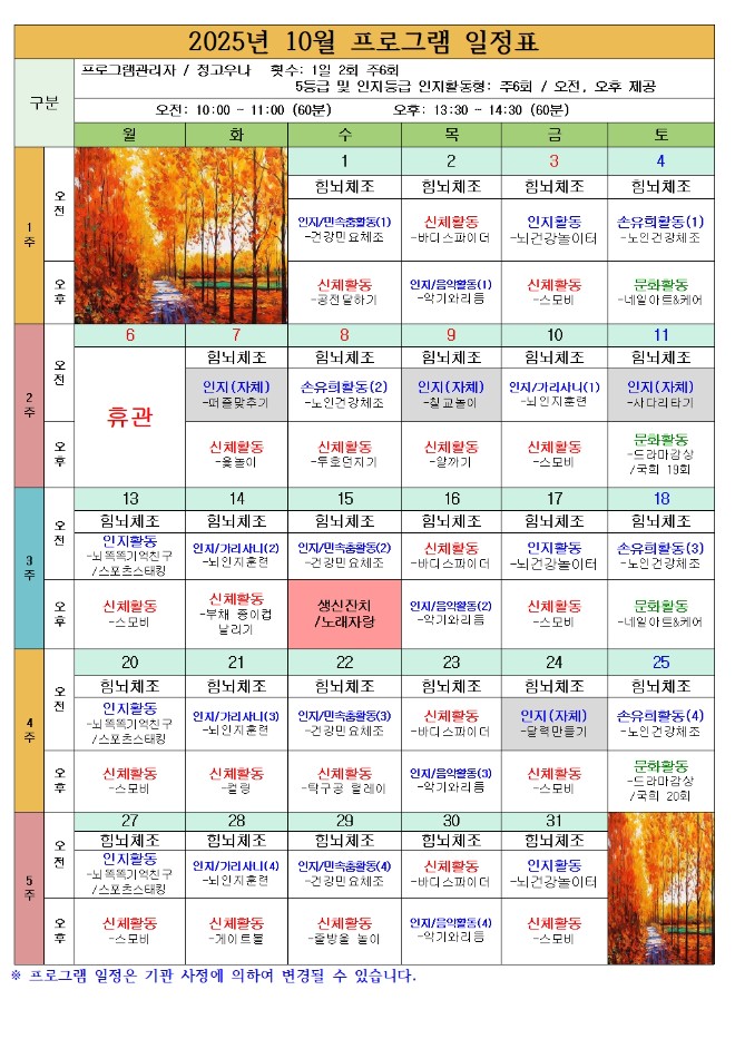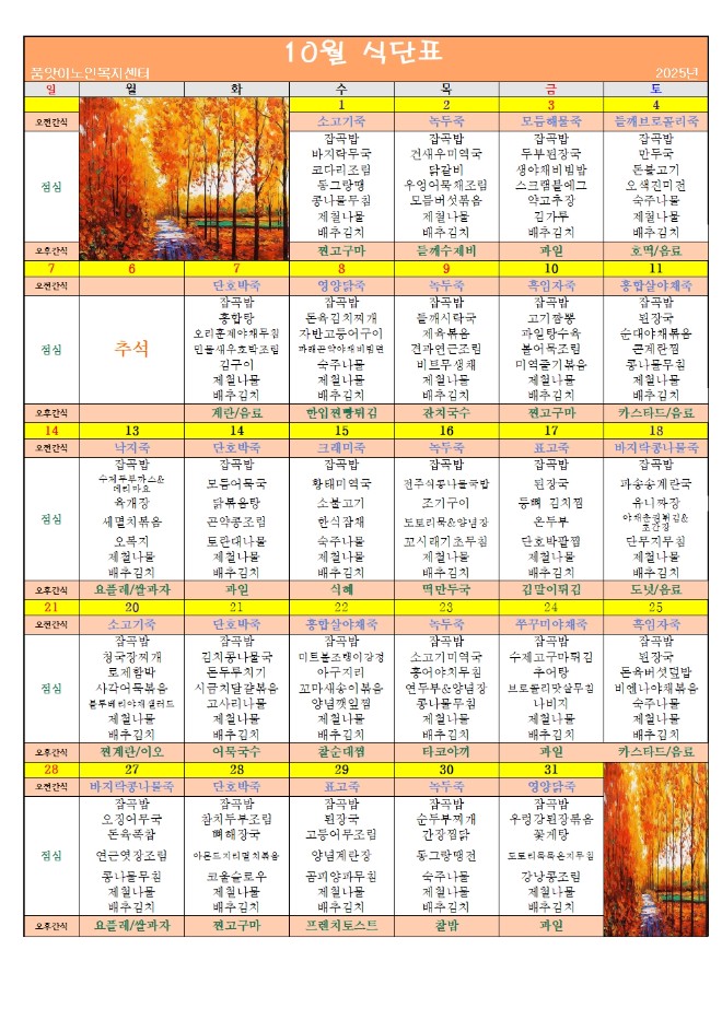 제목 | 2025년 10월 가정통신문,프로그램일정표,식단표 | 공지일 | 2025.09.26 |